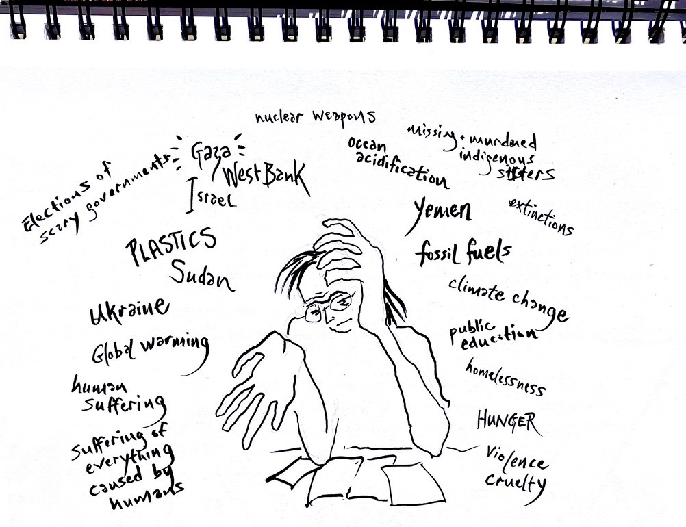 I’ll give more background in my first few posts, but here’s a short version! In spring 2024, I was feeling overwhelmed with the news of the world. I’m a writer* but I was tired of words, so I started drawing instead.