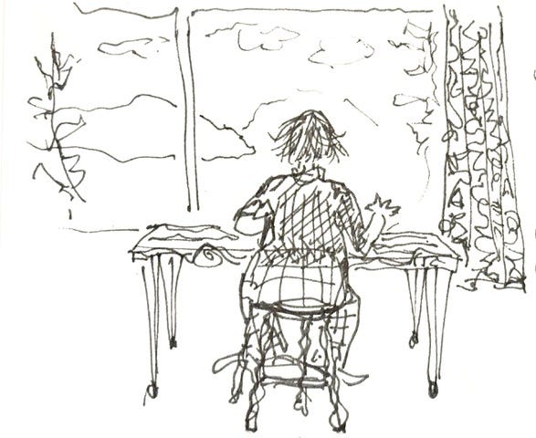 Wanting to clear my cluttered brain, I made a narrow desk out of a local live edge board and I kept drawing.
